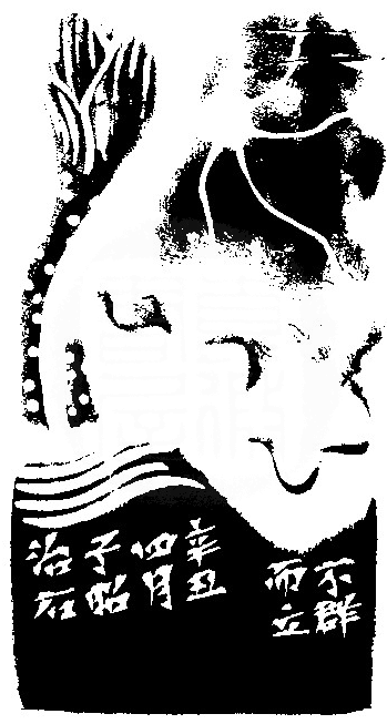 黃嘗銘.六十八歲/刻〔不群〕長方朱文印。邊款為【不群而立。辛丑四月,子昭治石。】壽山黃芙蓉石。荷葉浮雕鈕。