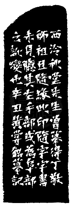 黃嘗銘.六十八歲/刻〔且隨緣〕長方朱文印。邊款為【西泠秋堂先生曾摹得丁敬師祖且隨緣此印,隨字字書未見,臆其左手部或為阜部之訛變也。辛丑,黃嘗銘摹記。】老撾田黃石。自然頂。