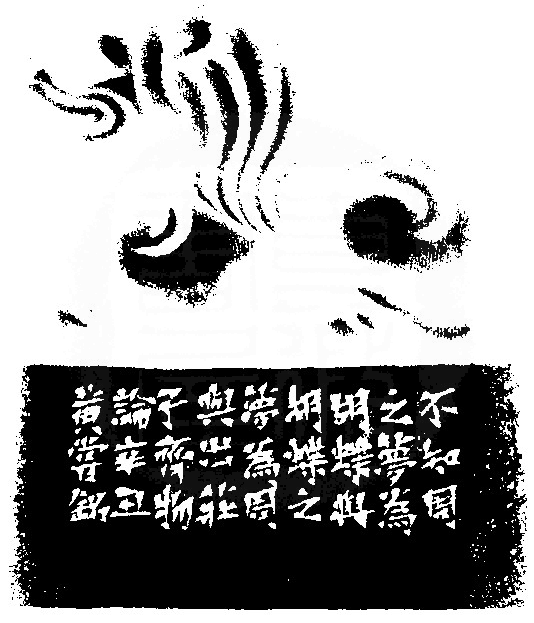 黃嘗銘.六十八歲/刻〔莊周夢蝶〕長橢圓朱文印。邊款為【不知周之夢為胡蝶與,胡蝶之夢為周與?出《莊子.齊物論》。辛丑,黃嘗銘。】老撾田黃石。古獸鈕。
