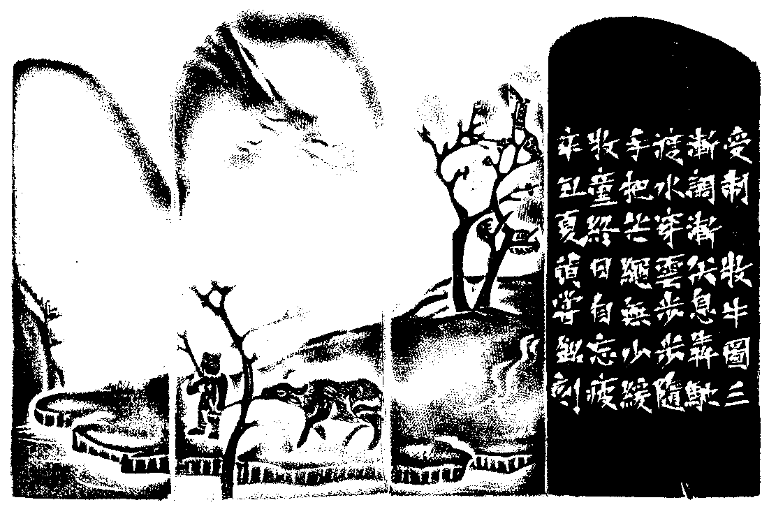 黃嘗銘.六十八歲/刻〔受制〕長方朱文印。邊款為【受制。《牧牛圖》三。漸調漸伏息奔馳,渡水穿雲步步隨,手把芒繩無少緩,牧童終日自忘疲。辛丑夏,黃嘗銘刻。】老撾田黃石。牧牛薄意鈕。