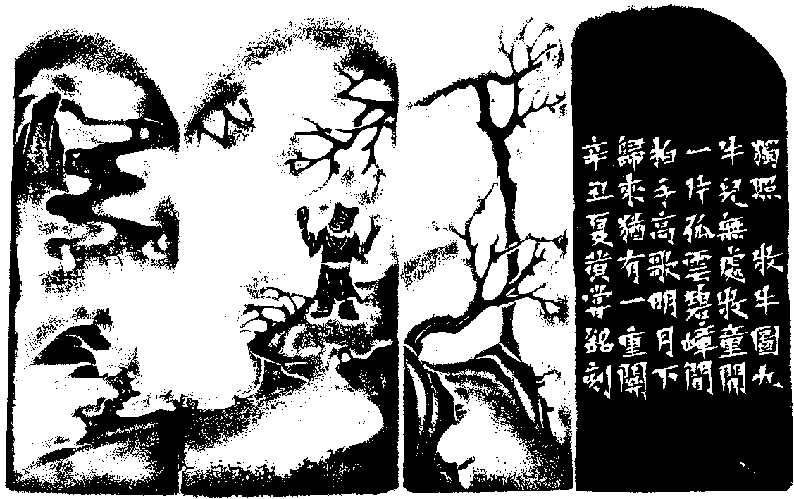 黃嘗銘.六十八歲/刻〔獨照〕長方朱文印。邊款為【獨照。《牧牛圖》九。牛兒無處牧童閒,一片孤雲碧嶂間,拍手高歌明月下,歸來猶有一重關。辛丑夏,黃嘗銘刻。】老撾田黃石。牧牛薄意鈕。