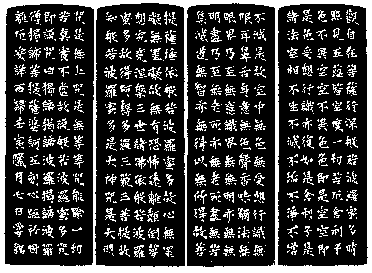 | | 印文:不生不滅不垢不淨不增不減 | | 約 橫 3.0 X 豎 2.9 公分 印面圖 | | 黃嘗銘.六十九歲/刻〔不生不滅不垢不淨不增不減〕正方朱白文印。邊款為【觀自在菩薩。行深般若波羅蜜多時。照見五蘊皆空。度一切苦厄。舍利子。色不異空。空不異色。色即是空。空即是色。受想行識。亦復如是。舍利子。是諸法空相。不生不滅。不垢不淨。不增不減。是故空中無色。無受想行識。無眼耳鼻舌身意。無色聲香味觸法。無眼界。乃至無意識界。無無明。亦無無明盡。乃至無老死。亦無老死盡。無苦集滅道。無智亦無得。以無所得故。菩提薩埵。依般若波羅蜜多故。心無罣礙。無罣礙故。無有恐怖。遠離顛倒夢想。究竟涅槃。三世諸佛。依般若波羅蜜多故。得阿耨多羅三藐三菩提。故知般若波羅蜜多。是大神咒。是大明咒。是無上咒。是無等等咒。能除一切苦。真實不虛。故說般若波羅蜜多咒。即說咒曰。揭諦揭諦。波羅揭諦。波羅僧揭諦。菩提薩婆訶。五刻心經祈母離厄安詳西歸。壬寅臘月七日,嘗銘。】巴林石。圓弧頂。 2022 年刻 |