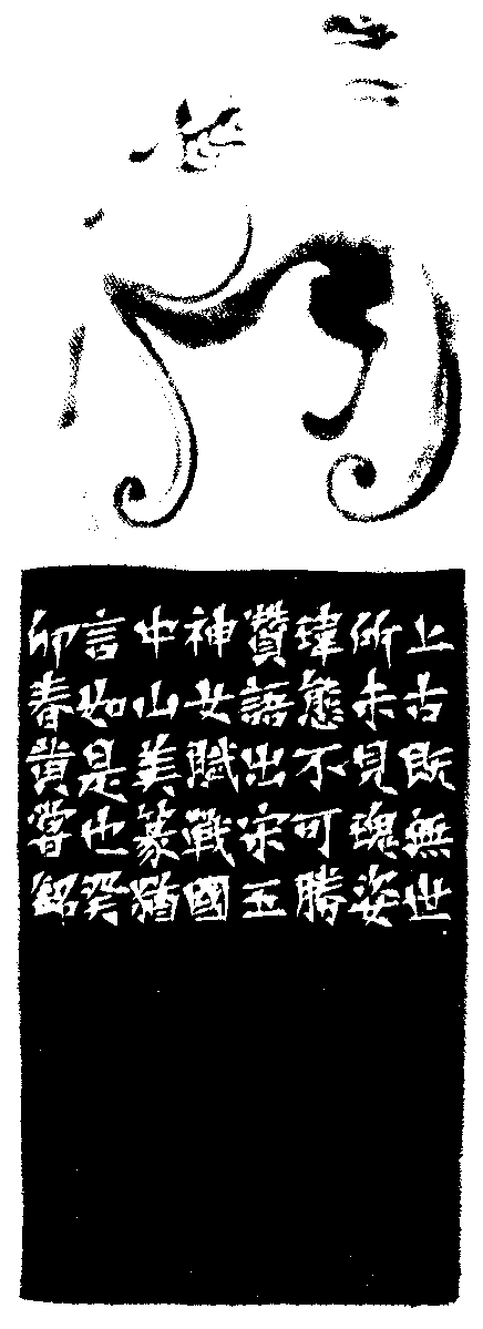 黃嘗銘.七十歲/刻〔不可勝贊〕正方加框白文印。邊款為【上古既無,世所未見。瑰姿瑋態,不可勝贊。語出宋玉《神女賦》。戰國中山美篆猶言如是也!癸卯春,黃嘗銘。】老撾石。母子螭鈕。