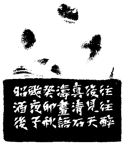 黃嘗銘.七十歲/刻〔往往醉後〕長方朱文印。邊款為【往往醉後見天真。清石濤畫語。癸卯秋颱夜,子昭酒後。】老撾北黃白石。伏牛鈕。