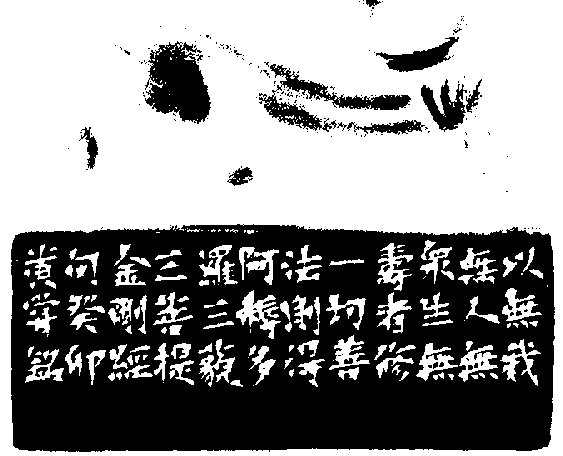 黃嘗銘.七十歲/刻〔無我無人無眾生無壽者〕正方朱文印。邊款為【以無我、無人、無眾生、無壽者,修一切善法,則得阿耨多羅三藐三菩提。《金剛經》句。癸卯,黃嘗銘。】老撾田黃石。雙螭鈕。