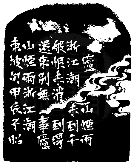 黃嘗銘.七十一歲/刻〔到得還來別無事〕正方朱文印。邊款為【廬山煙雨浙江潮,未到千般恨未消,到得還來別無事,廬山煙雨浙江潮。東坡句。甲辰,子昭。】老撾田黃石。山水薄意。  2024 年刻