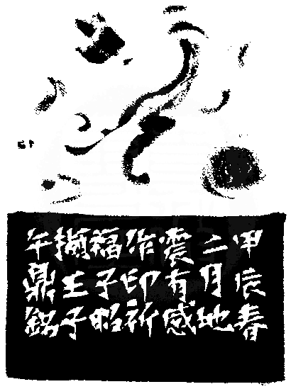 黃嘗銘.七十一歲/刻〔祈福〕長方加框白文印。邊款為【甲辰春二月,地震有感作印祈福。子昭擷王子午鼎銘。】老撾北黃白石。螭雲鈕。  2024 年刻