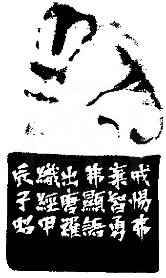 黃嘗銘.七十一歲/刻〔戒惕〕長方朱文印。邊款為【戒惕弗棄,智勇弗顯。語出《羅織經》。甲辰,子昭。】老撾田黃石。鰲龍鈕。