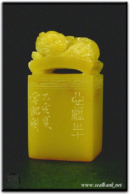 黃嘗銘.四十二歲/刻〔受想行識〕長方朱文印。邊款為【心經之十。乙亥夏,嘗銘刻。】芙蓉石。