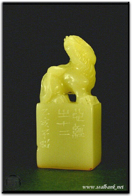黃嘗銘.四十二歲/刻〔舍利子〕長方加框白文印。邊款為【心經之十二。乙亥,子昭。】芙蓉石。