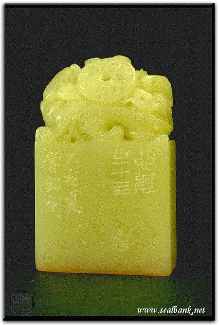 黃嘗銘.四十二歲/刻〔不生不滅〕長方細朱文印。邊款為【心經之十四。乙亥夏,子昭刻。】芙蓉石。