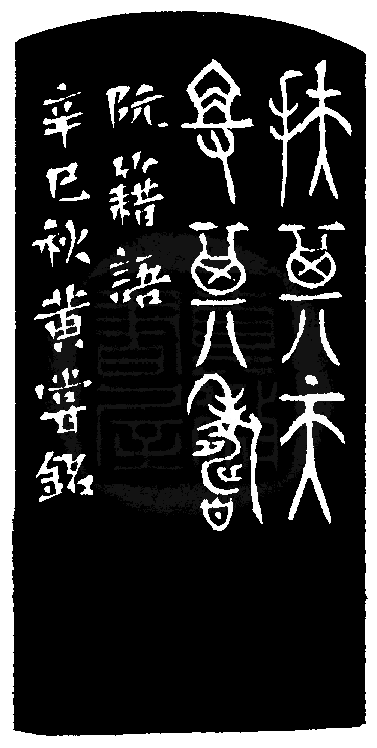 黃嘗銘.四十八歲/刻〔扶其天助其壽〕正方加框白文印。邊款為【扶其天助其壽。阮籍語。辛巳秋,黃嘗銘。】昌化雞血石。