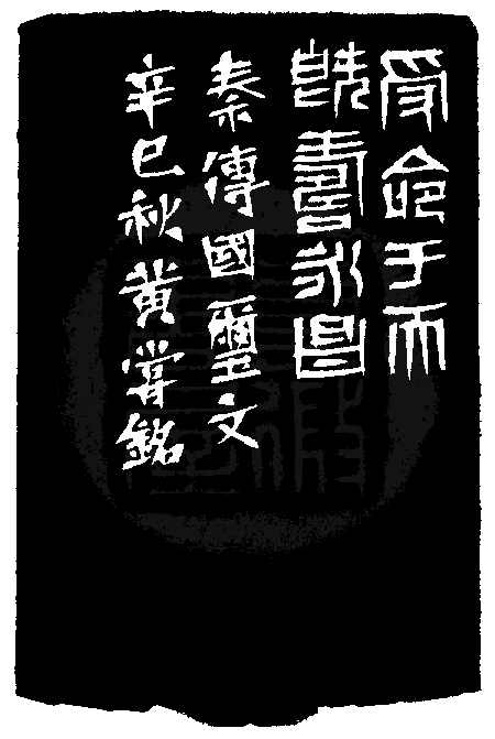 黃嘗銘.四十八歲/刻〔受命于天既壽永昌〕圓形橫讀朱文印。邊款為【受命于天既壽永昌。秦傳國璽文。辛巳秋,黃嘗銘。】巴林雞血石。