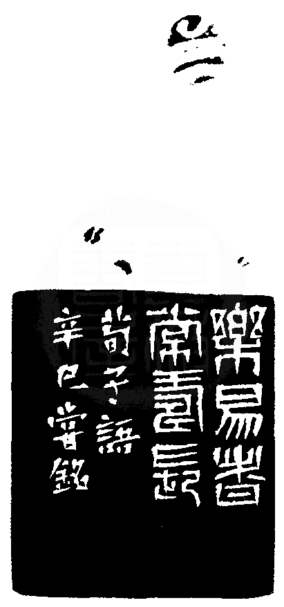 黃嘗銘.四十八歲/刻〔樂易者常壽長〕正方朱文印。邊款為【樂易者常壽長。荀子語。辛巳,嘗銘。】巴林凍。