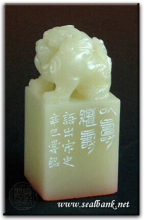黃嘗銘.四十八歲/刻〔以壽繼壽〕正方加框白文印。邊款為【以壽繼壽。語出宋史。辛巳,嘗銘。】芙蓉石。