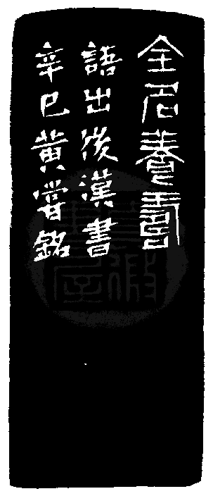 黃嘗銘.四十八歲/刻〔全名養壽〕正方白文界格印。邊款為【全名養壽。語出後漢書。辛巳,黃嘗銘。】青田凍。