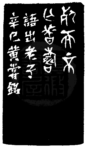 黃嘗銘.四十八歲/刻〔死而不亡者壽〕正方白文印。邊款為【死而不亡者壽。語出老子。辛巳,黃嘗銘。】青田凍。