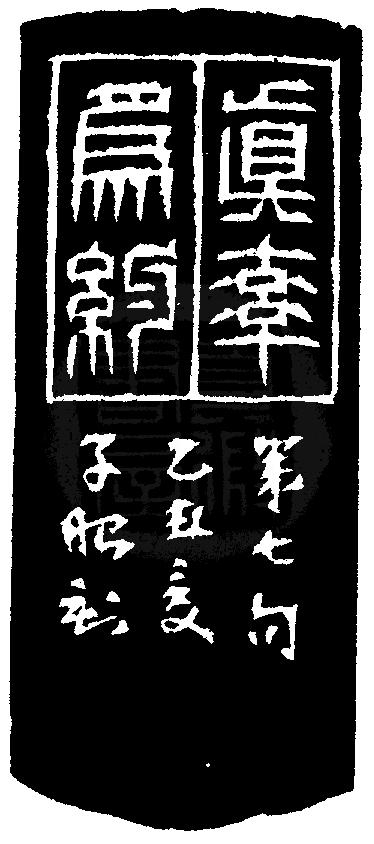 黃嘗銘.卅二歲/刻〔真率為約〕圓形環讀朱文印。邊款為【真率為約。第七句。乙丑夏,子昭刻。】原印今藏於林居正。泰來玳瑁。