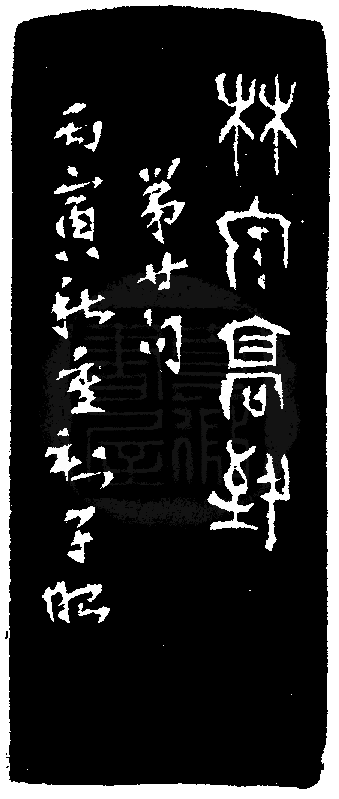 黃嘗銘.卅三歲/刻〔林泉高致〕正方白文界格印。邊款為【林泉高致。第廿句。丙寅秋重刻,子昭。】原印今藏於林居正。泰來玳瑁。