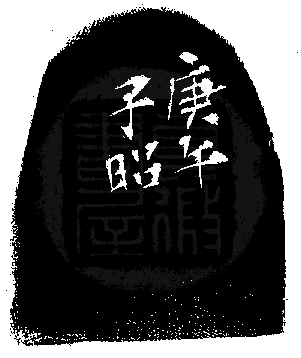 黃嘗銘.卅七歲/刻〔和氣致祥〕自然形朱文印。邊款為【庚午,子昭。】原印今藏於林慶華。巴林凍。