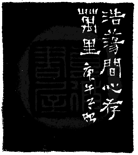 黃嘗銘.卅七歲/刻〔浩蕩間心存萬里〕長方白文印。邊款為【浩蕩間心存萬里,庚午,子昭。】荔枝凍。