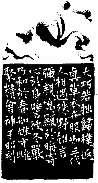 黃嘗銘.卅七歲/刻〔樸拙〕長方白文印。邊款為【大巧若拙,歸樸返真,草衣卉服,如三代人,相遇殊野,相言彌親,寓顯於晦,寄心於身,譬彼冬嚴,乃和於春,知雄守雌,聚精會神。子昭刻。】原印今藏於蕭俊卿。荔枝凍。