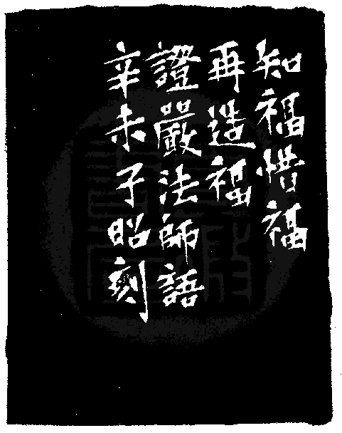 黃嘗銘.卅八歲/刻〔惜福〕長方白文印。邊款為【知福惜福在造福。證嚴法師語。辛未,子昭刻。】原印今藏於吳淑婉。巴林石。