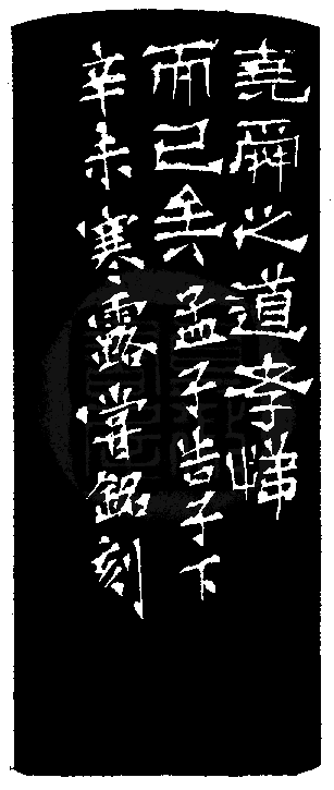 黃嘗銘.卅八歲/刻〔孝悌傳家〕正方白文印。邊款為【堯舜之道,孝悌而已矣。孟子告子下。辛未寒露,嘗銘刻。】巴林凍。