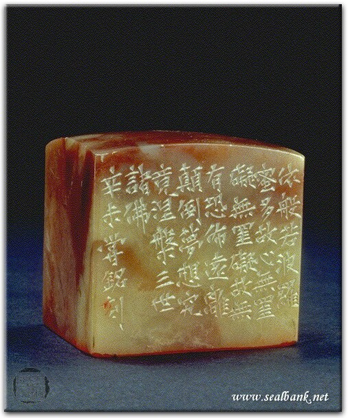 黃嘗銘.卅八歲/刻〔依般若波羅蜜多故〕正方朱文印。泰來玳瑁。