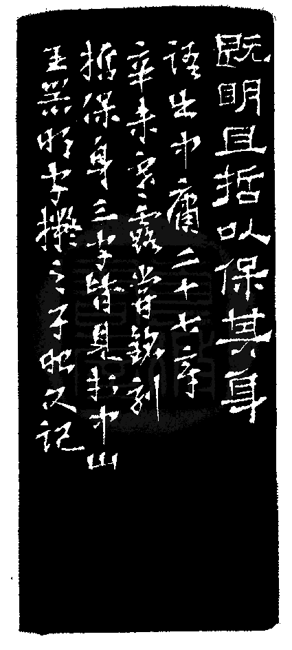 黃嘗銘.卅八歲/刻〔明哲保身〕長方朱文印。邊款為【既明且哲以保其身。語出《中庸》二十七章。辛未寒露,嘗銘刻。哲保身三字皆見於中山王器,明字擬之,子昭又記。】原印今藏於葉輝澐。巴林石。