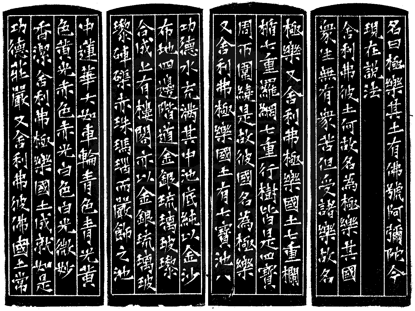 | | 印文:阿彌陀佛 | | 約 橫 2.9 X 豎 2.9 公分 印面圖 | | 黃嘗銘.卅七歲/刻〔阿彌陀佛〕正方白文界格印。邊款為【名曰極樂,其土有佛,號阿彌陀,今現在說法。」「舍利弗,彼土何故名為極樂?其國眾生,無有眾苦,但受諸樂,故名極樂。」「又舍利弗。極樂國土,七重欄楯,七重羅網,七重行樹,皆是四寶周匝圍繞,是故彼國名為極樂。」「又舍利弗。極樂國土,有七寶池,八功德水,充滿其中,池底純以金沙布地。四邊階道,金、銀、琉璃、玻璃合成。上有樓閣,亦以金、銀、琉璃、玻璃、硨磲、赤珠、瑪瑙而嚴飾之。池中蓮花大如車輪,青色青光、黃色黃光、赤色赤光、白色白光,微妙香潔。」「舍利弗。極樂國土,成就如是功德莊嚴。」「又舍利弗。彼佛國土,常】原印今藏於陳川林。巴林石。 1990 年刻 |