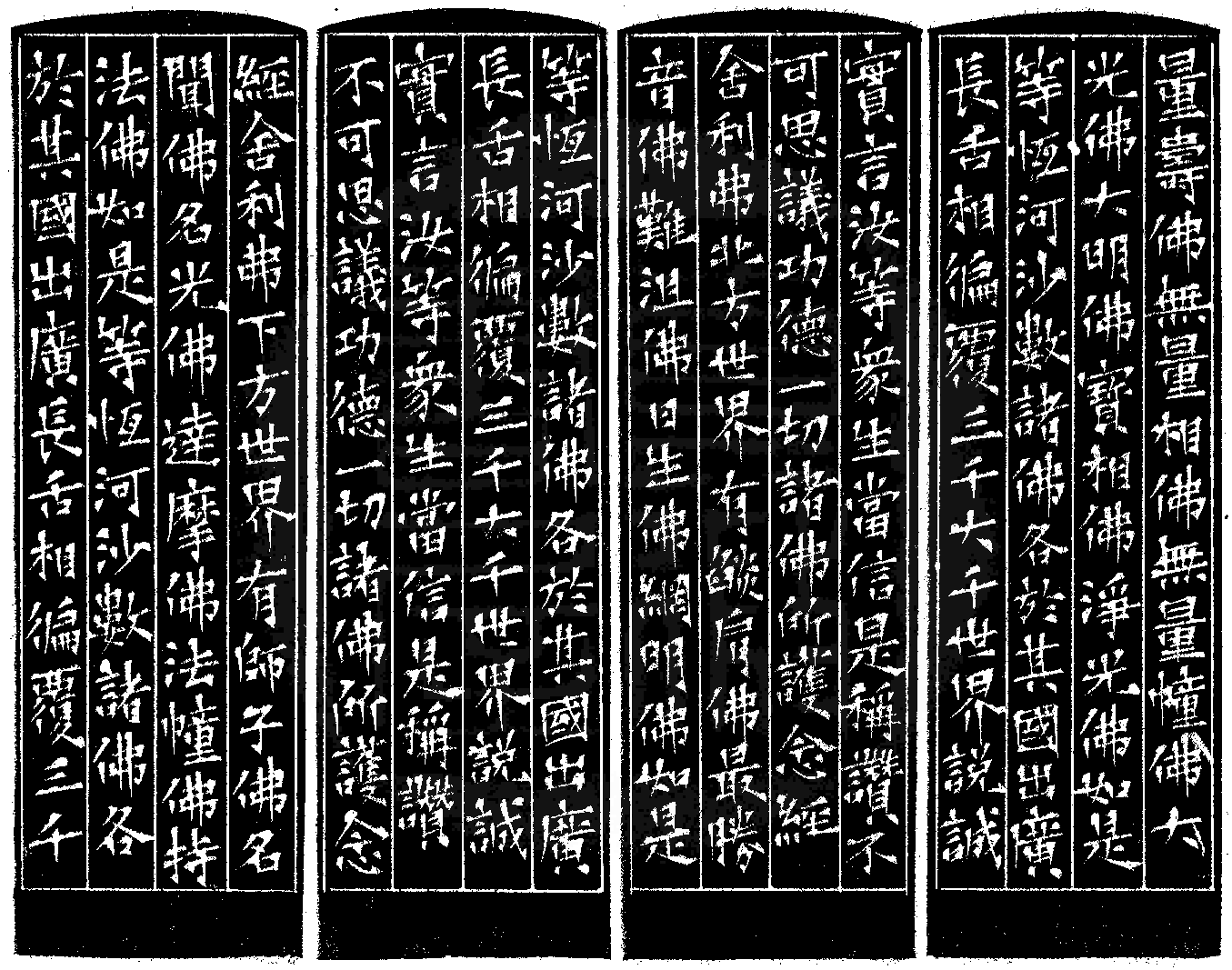 | | 印文:阿彌陀佛 | | 約 橫 2.8 X 豎 2.7 公分 印面圖 | | 黃嘗銘.卅七歲/刻〔阿彌陀佛〕正方朱文印。邊款為【量壽佛、無量相佛、無量幢佛、大光佛、大明佛、寶相佛、淨光佛,如是等恆河沙數諸佛,各於其國,出廣長舌相,遍覆三千大千世界,說誠實言:『汝等眾生,當信是稱讚不可思議功德一切諸佛所護念經。』」「舍利弗。北方世界,有焰肩佛、最勝音佛、難沮佛、日生佛、網明佛,如是等恆河沙數諸佛,各於其國,出廣長舌相,遍覆三千大千世界,說誠實言:『汝等眾生,當信是稱讚不可思議功德一切諸佛所護念經。』」「舍利弗。下方世界,有師子佛、名聞佛、名光佛、達摩佛、法幢佛、持法佛,如是等恆河沙數諸佛,各於其國,出廣長舌相,遍覆三千】原印今藏於陳川林。巴林石。 1990 年刻 |