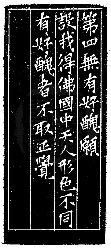 黃嘗銘.卅九歲/刻〔無有好醜〕正方細朱文印。邊款為【第四、無有好醜願。設我得佛,國中天人,形色不同,有好醜者,不取正覺。】原印今藏於陳川林。巴林石。