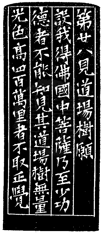 黃嘗銘.卅九歲/刻〔見道場樹〕正方白文印。邊款為【第廿八、見道場樹願。設我得佛,國中菩薩,乃至少功德者,不能知見其道場樹,無量光色,高四百萬里者,不取正覺。】原印今藏於陳川林。巴林石。