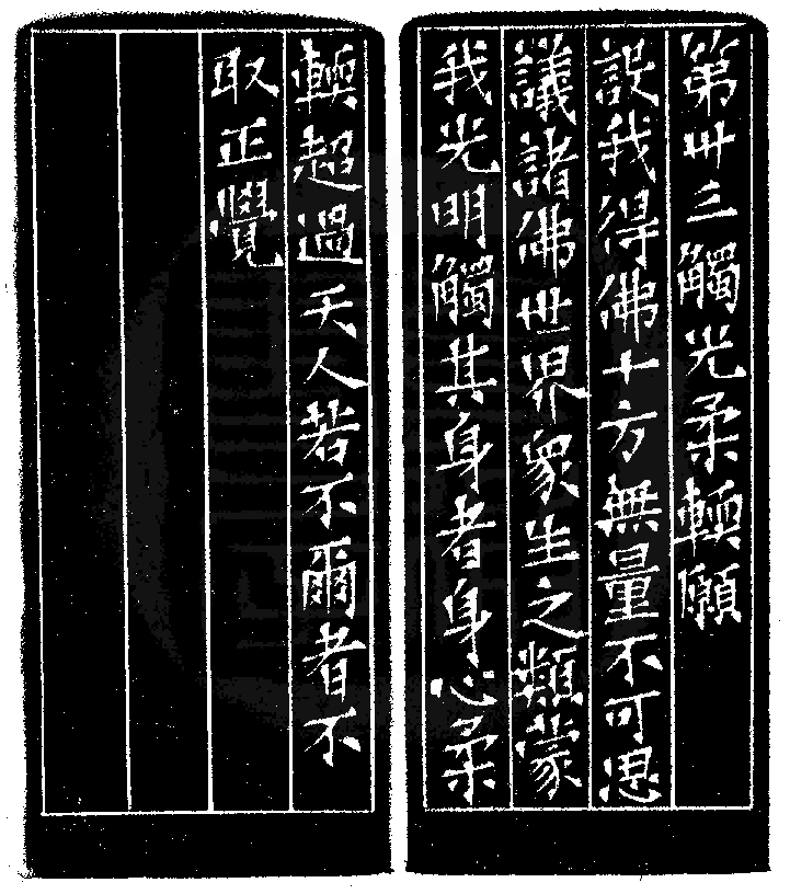 黃嘗銘.卅九歲/刻〔觸光柔軟〕正方加框白文印。邊款為【第卅三、觸光柔軟願。設我得佛,十方無量不可思議諸佛世界眾生之類,蒙我光明觸其身者,身心柔軟,超過天人。若不爾者,不取正覺。】原印今藏於陳川林。巴林石。