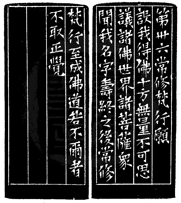 黃嘗銘.卅九歲/刻〔常修梵行〕正方加框白文印。邊款為【第卅六、常修梵行願。設我得佛,十方無量不可思議諸佛世界諸菩薩眾,聞我名字,壽終之後,常修梵行,至成佛道。若不爾者,不取正覺。】原印今藏於陳川林。巴林石。