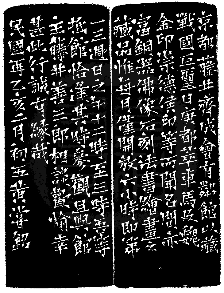 | | 印文:無緣難會有鄰家 | | 約 橫 2.8 X 豎 2.9 公分 印面圖 印石圖 | | 黃嘗銘.四十二歲/刻〔無緣難會有鄰家〕正方朱文印。邊款為【京都藤井齊成會有鄰館,以藏戰國巨璽《日庚都萃車馬》及魏金印《崇德侯印》等而聞名,間亦富銅器、佛像、石刻、法書、繪畫之藏品,惟每月僅開放六小時—即第一、三週日之午十二時至三時,吾等扺館恰逢其時參觀,且與館主藤井善三郎相談歡愉,幸甚此行,誠有緣哉。民國再乙亥二月初五,黃嘗銘。】巴林凍。 1995 年刻 |