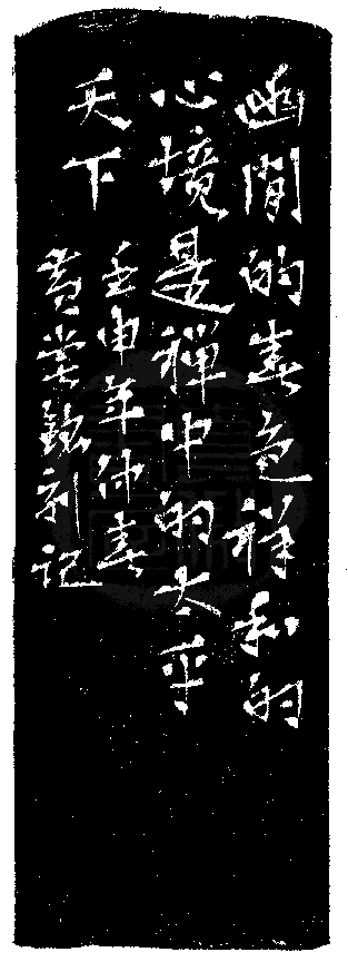 黃嘗銘.卅九歲/刻〔天下太平〕正方朱白文印。邊款為【幽閒的春色,祥和的心境,是禪中的太平天下。壬申年仲春,黃嘗銘刻記。】巴林凍。