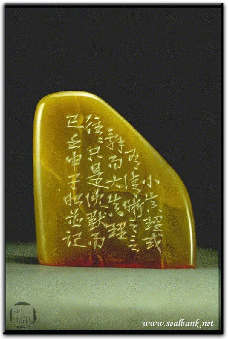 黃嘗銘.卅九歲/刻〔默默獨行〕自然形朱文印。邊款為【小真理或有清晰之言辭,而大真理往往只是沈默而已。壬申,子昭並記。】巴林凍。