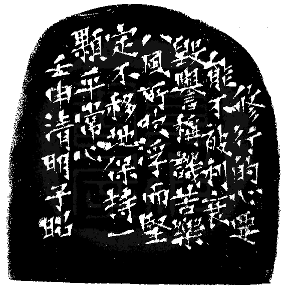 黃嘗銘.卅九歲/刻〔平常心〕自然形朱文印。邊款為【修行的心要能不被利衰毀譽稱譏苦樂八風所吹浮,而堅定不移地保持一顆平常心。壬申清明,子昭。】巴林凍。