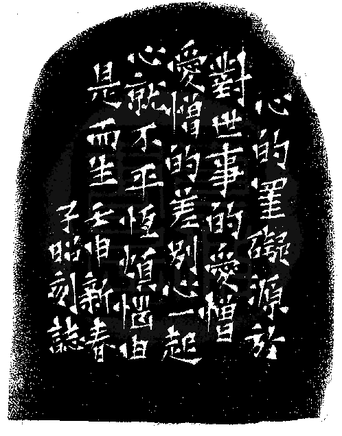 黃嘗銘.卅九歲/刻〔但莫愛憎〕自然形朱文借邊印。邊款為【心的罣礙源於對世事的愛憎,愛憎的差別心一起,心就不平恆,煩惱由是而生。壬申新春,子昭刻誌。】巴林凍。