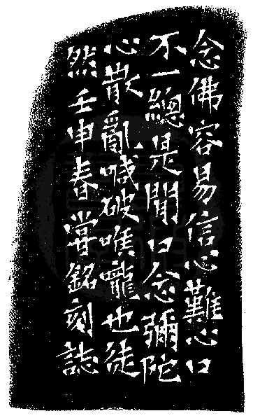 黃嘗銘.卅九歲/刻〔老實唸佛〕自然形朱文印。邊款為【念佛容易信心難,心口不一總是閒,口念彌陀心散亂,喊破喉嚨也徒然。壬申春,嘗銘刻誌。】巴林凍。
