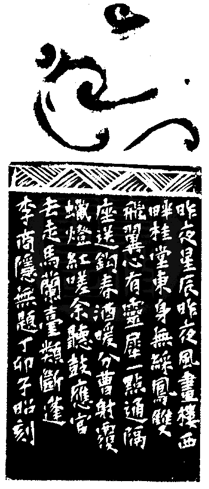 黃嘗銘.卅四歲/刻〔心有靈犀一點通〕正方加框白文印。邊款為【昨夜星辰昨夜風,畫樓西畔桂堂東,身無綵鳳雙飛翼,心有靈犀一點通。隔座送鉤春酒暖,分曹射覆蠟燈紅,嗟余聽鼓應官去,走馬蘭臺類斷蓬。李商隱無題。丁卯,子昭刻。】巴林石。