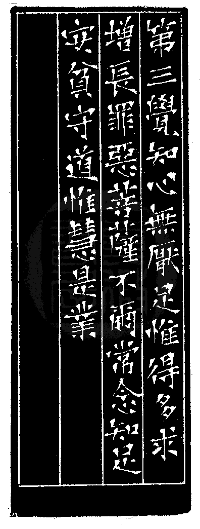 黃嘗銘.四十一歲/刻〔知足守道〕正方朱白文印。邊款為【第三覺,知心無厭足,惟得多求,增長罪惡,菩薩不爾,常念知足,安貧守道,惟慧是業。】巴林石。