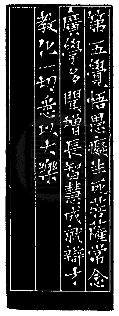 黃嘗銘.四十一歲/刻〔多聞智慧〕正方粗朱文印。邊款為【第五覺,悟愚癡生死,菩薩常念,廣學多聞,增長智慧,成就辯才,教化一切,悉以大樂。】巴林石。