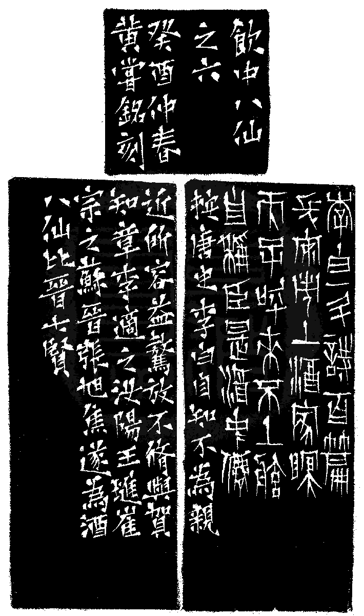 黃嘗銘.四十歲/刻〔自稱臣是酒中仙〕正方加框白文印。邊款為【李白一斗詩百篇,長安市上酒家眠,天子呼來不上舷,自稱臣是酒中仙。按唐史,李白自知不為親近所容,益驁放不脩,與賀知章、李適之、汝陽王璡、崔宗之、蘇晉、張旭、焦遂為酒八仙,比晉七賢。飲中八仙之六,癸酉仲春,黃嘗銘刻。】原印今藏於陳川林。巴林凍。