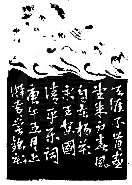 黃嘗銘.卅七歲/刻〔不肯畫堂朱戶春風自在楊花〕長方加框白文印。邊款為【留春不住,費盡鶯兒語。滿地殘紅宮錦汙,昨夜南園風雨。小憐初上琵琶,曉來思繞天涯。不肯畫堂朱戶,春風自在楊花。宋王安國清平樂詞。庚午五月上澣,黃嘗銘刻。】壽山荔枝。