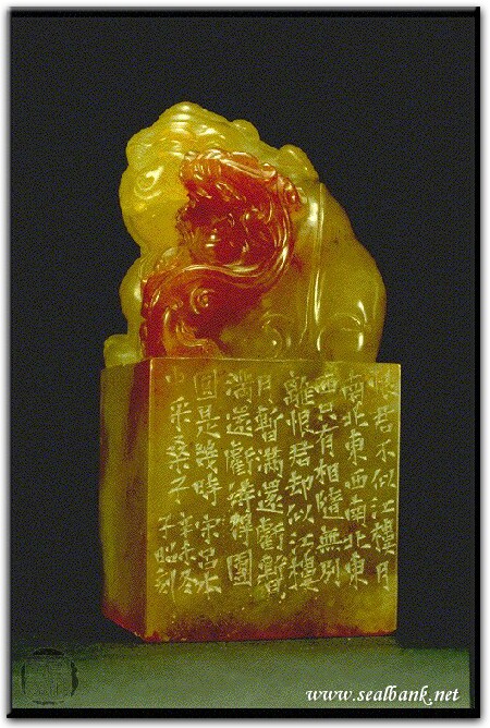 黃嘗銘.卅八歲/刻〔南北東西只有相隨無別離〕正方白文印。邊款為【恨君不似江樓月,南北東西,南北東西,只有相隨無別離。恨君卻似江樓月,暫滿還虧,暫滿還虧,待得團圓是幾時。宋呂本中采桑子。辛未冬,子昭刻。】壽山杜陵。