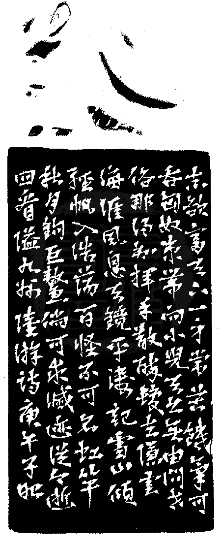 黃嘗銘.卅七歲/刻〔揮手散醉髮去隱雲海涯〕正方細朱文印。邊款為【志欲富天下,一身常苦饑。氣可吞匈奴,束帶向小兒。天公無由問,世俗那得知!揮手散醉髮,去隱雲海涯。風息天鏡平,濤起雪山傾。輕帆入浩蕩,百怪不可名。虹竿秋月鉤,巨鰲倘可求。滅跡從今逝,回看隘九州。陸游詩。庚午,子昭。】壽山高山。
