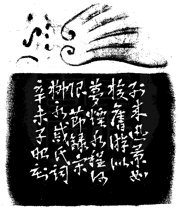 黃嘗銘.卅八歲/刻〔舊游似夢〕長橢圓朱文印。邊款為【別來迅景如梭,舊游似夢,煙水程何限。節錄柳永戚氏詞。辛未,子昭刻。】壽山荔枝凍。